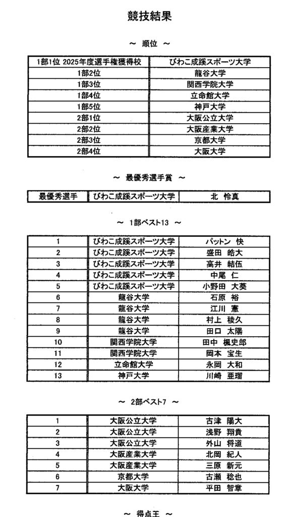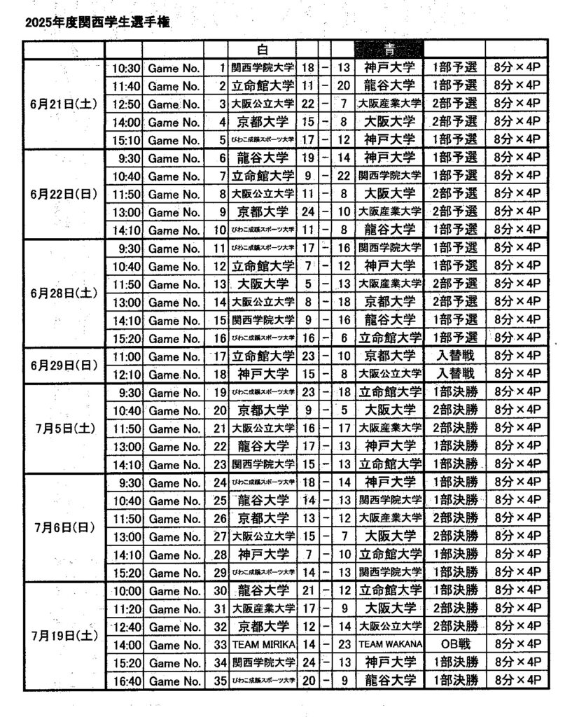 【学生リーグ第6試合結果】